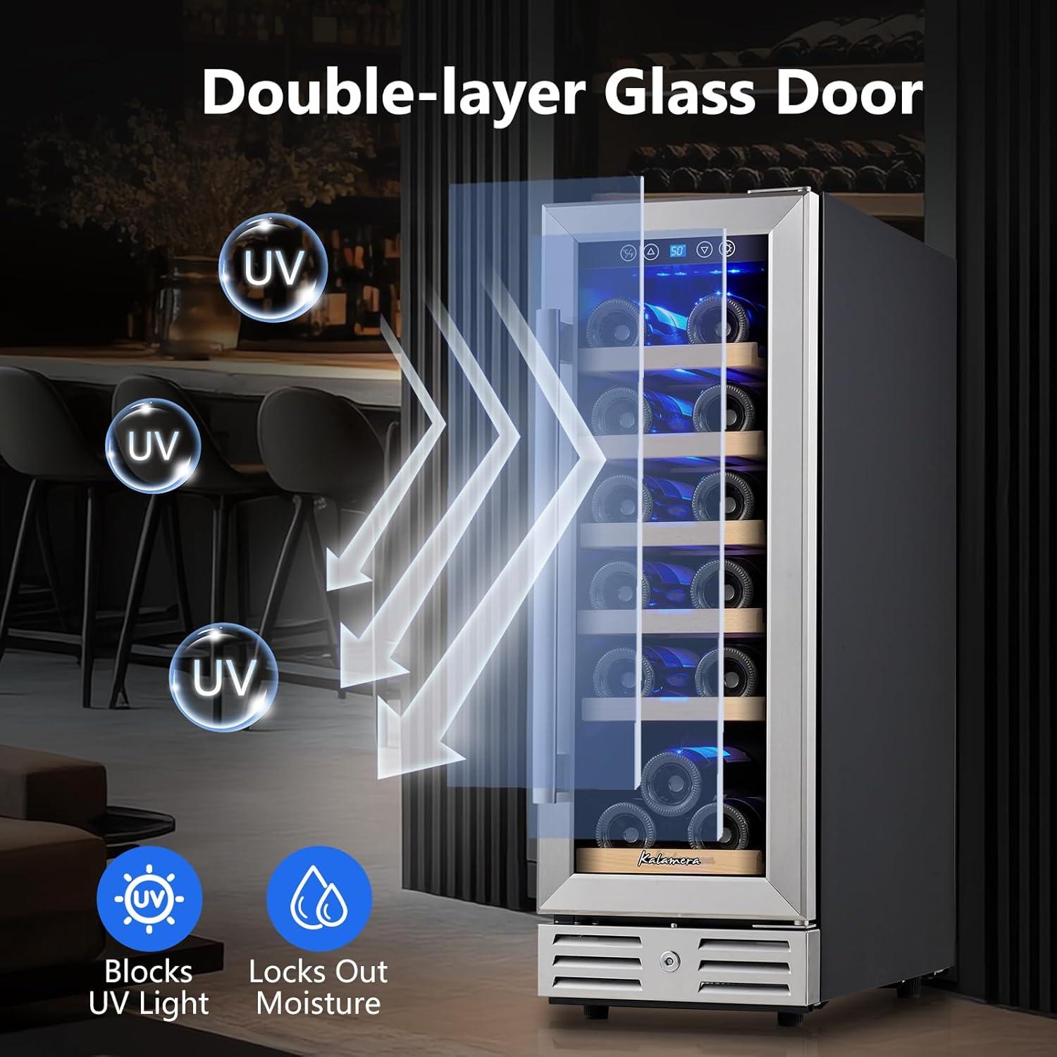 STAINLESS STEEL GLASS DOOR: Special stainless steel frame with 2 layers of tempered glass stabilize temperature levels inside aLnd keep glass from fogging. This wine and beverage refrigerator with automatic defrosting function, this function would work every 6 hours.