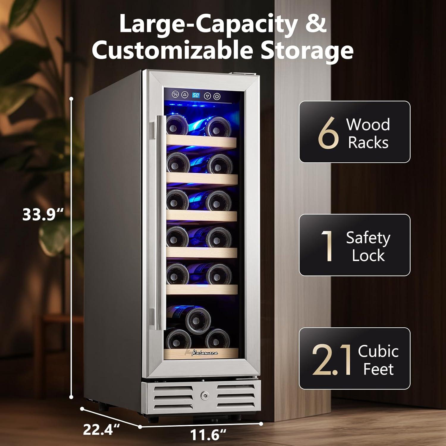 VERSATILE INSTALLATION: Takes just 17(W) x 18(D) x 33.8(H) inches of space and can be installed in kitchen or bar area, as a freestanding unit! Tips: Wait at least 24 hours after delivery before turning on the wine fridge.