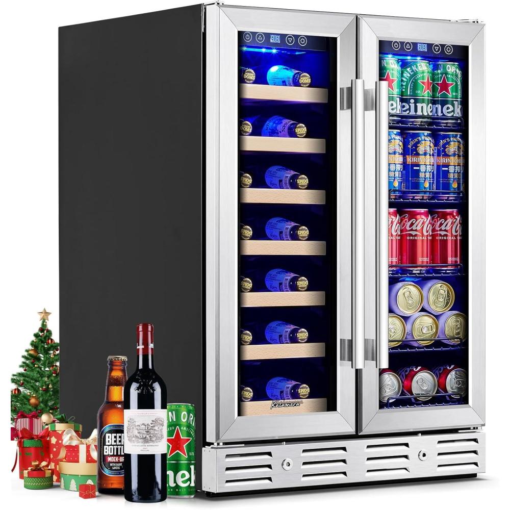 Kalamera Mini Beverage Fridge Refrigerator- 120 Cans Freestanding Drink Cooler - for Soda, Water, Beer or Wine with White LED Light(Dual Zone Black)