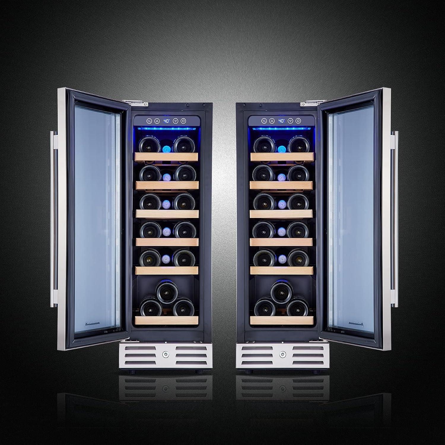 ★Single Zone/One-Touch Control: LED control display makes it easy to set temperature from 40-66°F, providing perfect chilling temperature at all times! Kalamera unique design makes this small wine cooler could be installed as a built-in wine cooler or freestanding wine fridges.