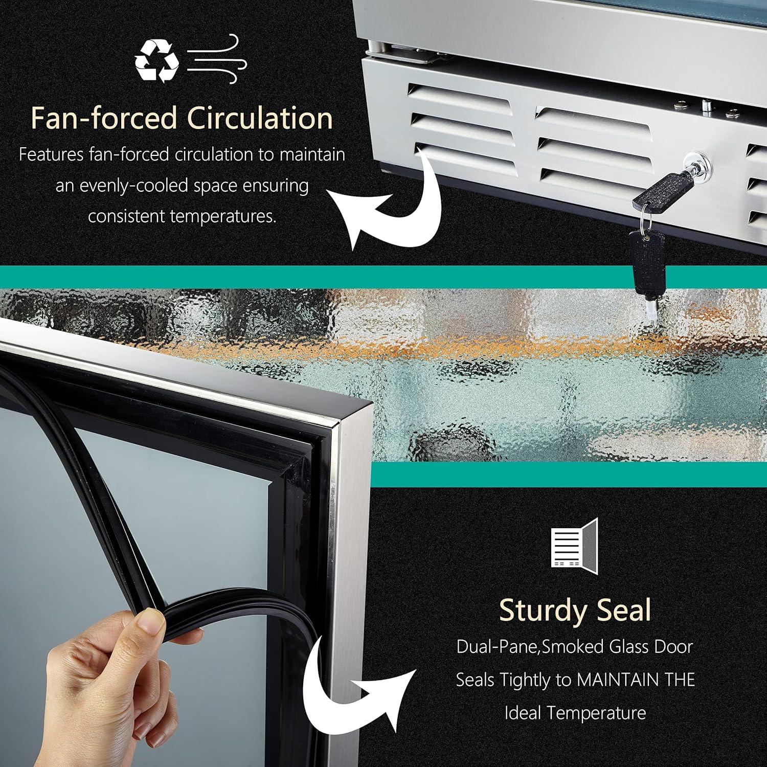 ★Attractive Design & Air Outlet: Special stainless steel frame with 2 layers of tempered glass stabilize temperature levels inside and keep glass from fogging. This wine and beverage refrigerator with automatic defrosting function, this function would work every six hours. The air outlet is so cool and fit for different kitchens, only Kalamera has this unique design on the market.